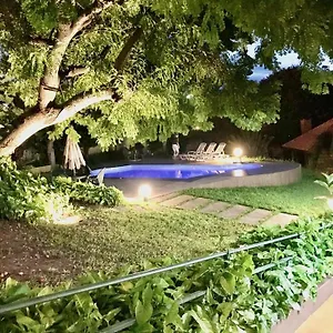 Os 6 quartos têm vista para o jardim e fazem parte de pátio.