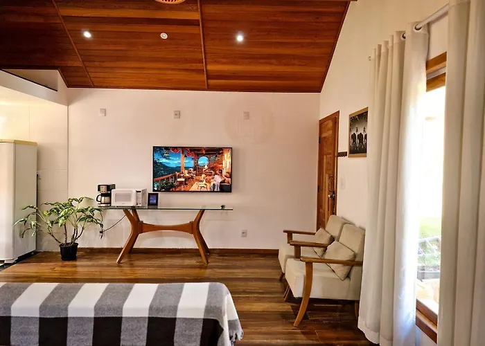 Chalé Sognare Uno oferece uma experiência agradável com vista para a cidade e facilidade de estacionamento. O chalé é composto por um quarto, uma cozinha equipada, além de comodidades como TV de tela plana. Localizado a 2.5 km de Casa Lambert e 25 minutos do Museu de Biologia Professor Mello Leitao, é perfeito para quem busca conforto e acesso fácil a atrativos locais. A estrutura é ideal para quem aprecia um ambiente aconchegante durante sua estadia.